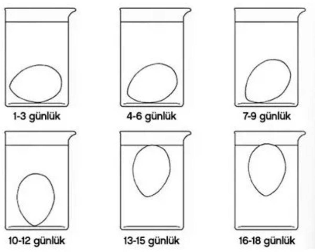 Yumurtanın suyun üzerinde kalması ise yumurtanın 16-18 gün arasında olduğunu gösterir.