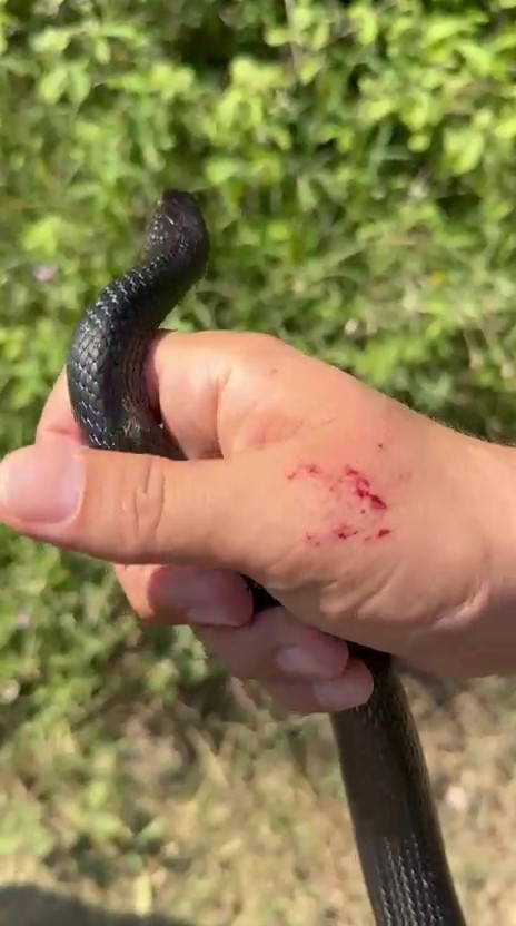 Kendisini ısıran yılanı doğaya salan Başer'in sağlık durumunun iyi olduğu öğrenildi. O anlar ise cep telefonu kamerasına yansıdı.