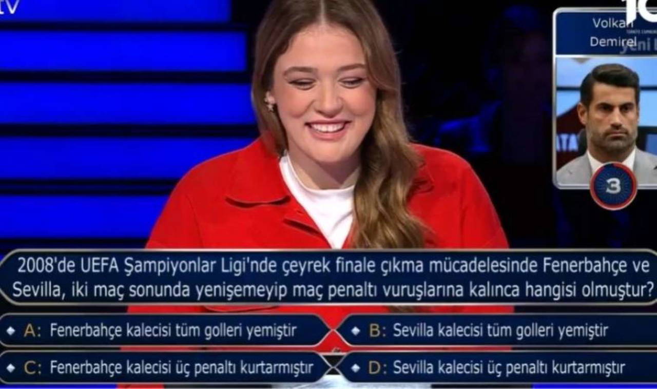 Şampiyon voleybolcu 9. soruda karşılaştığı soruda Hatay Erkek Futbol takımının teknik direktörü Volkan Demirel'den yardım istedi. Volkan Demirel'in yer aldığı bir maçla alakalı soruda Demirel'in verdiği cevap yüzleri gülümsetti...