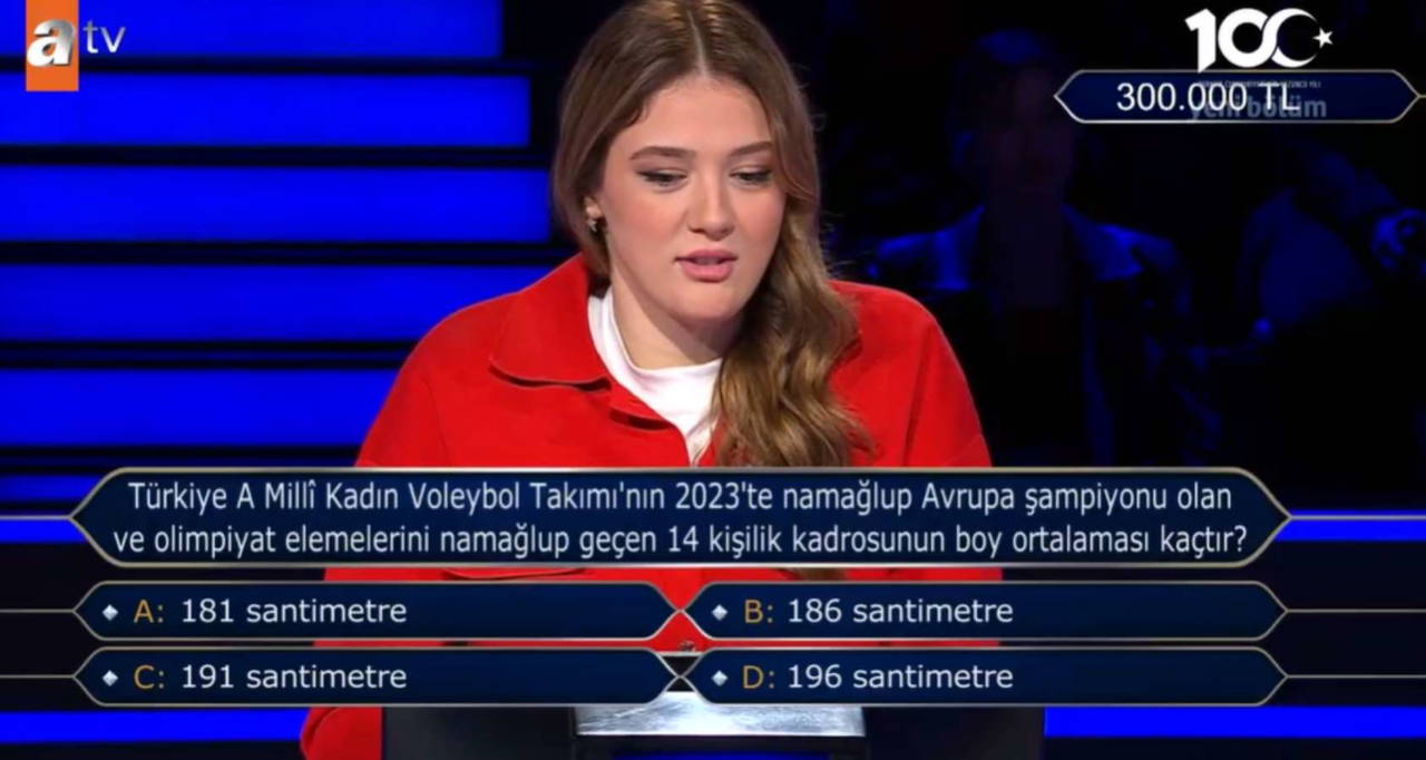 Milli voleybolcu 11. soruda çekilme kararı alarak 300. bin liralık büyük ödülün sahibi oldu.