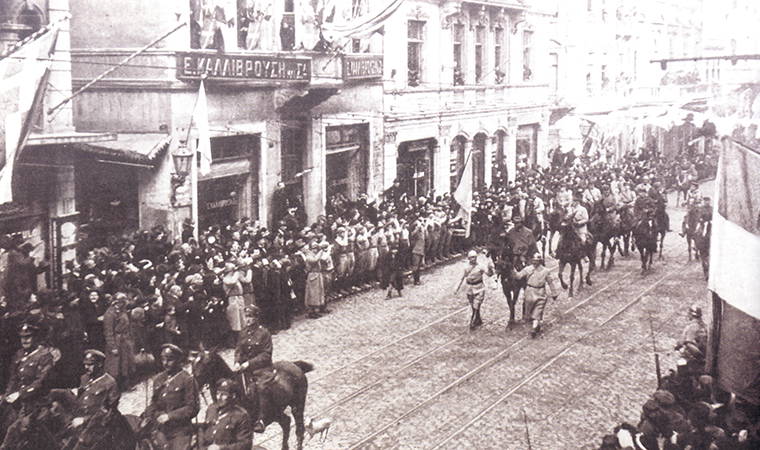 İstanbul’u işgal eden Fransız General d’Espèrey’nin Fatih’in fetih törenini anımsatan tören yürüyüşü. Fransız işgal kumandanı ve beraberindekileri alkışlarla karşılayan azınlıklar...