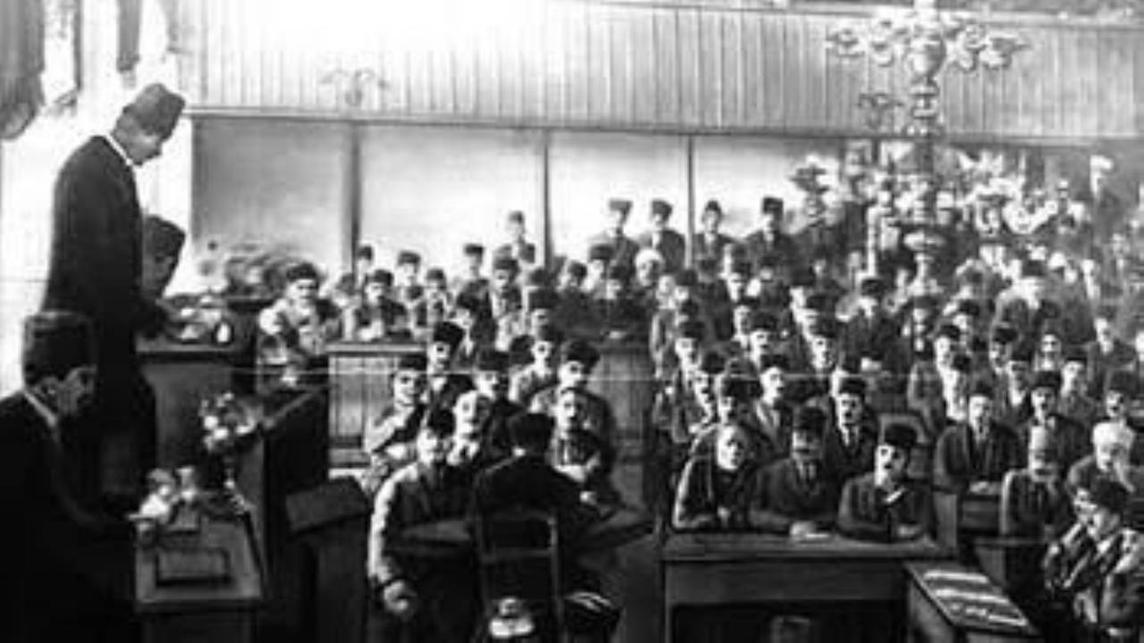 (Mustafa Kemal Atatürk ve Birinci Meclis üyeleri Büyük Millet Meclisi’nde.)