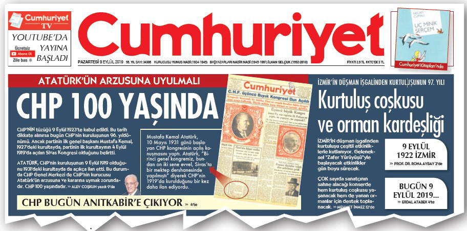 Cumhuriyet gazetesi için 9 Eylül 2020 iki önemli gündür: