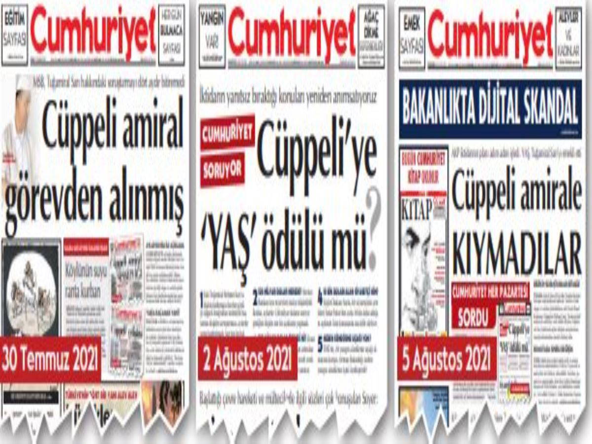 Cumhuriyet gazetesi, “tarikata bağlı üniformalı, sarıklı amiral” olayını ısrarla izledi. Konuyu gündemde tuttu. Tarikatçı amiralin eylemi zaten inkâr edilemezdi. Olayın üstünü örtemediler. Çünkü amiralin sarıklı cüppeli fotoğrafları tüm gazetelerde yayımlanmıştı.