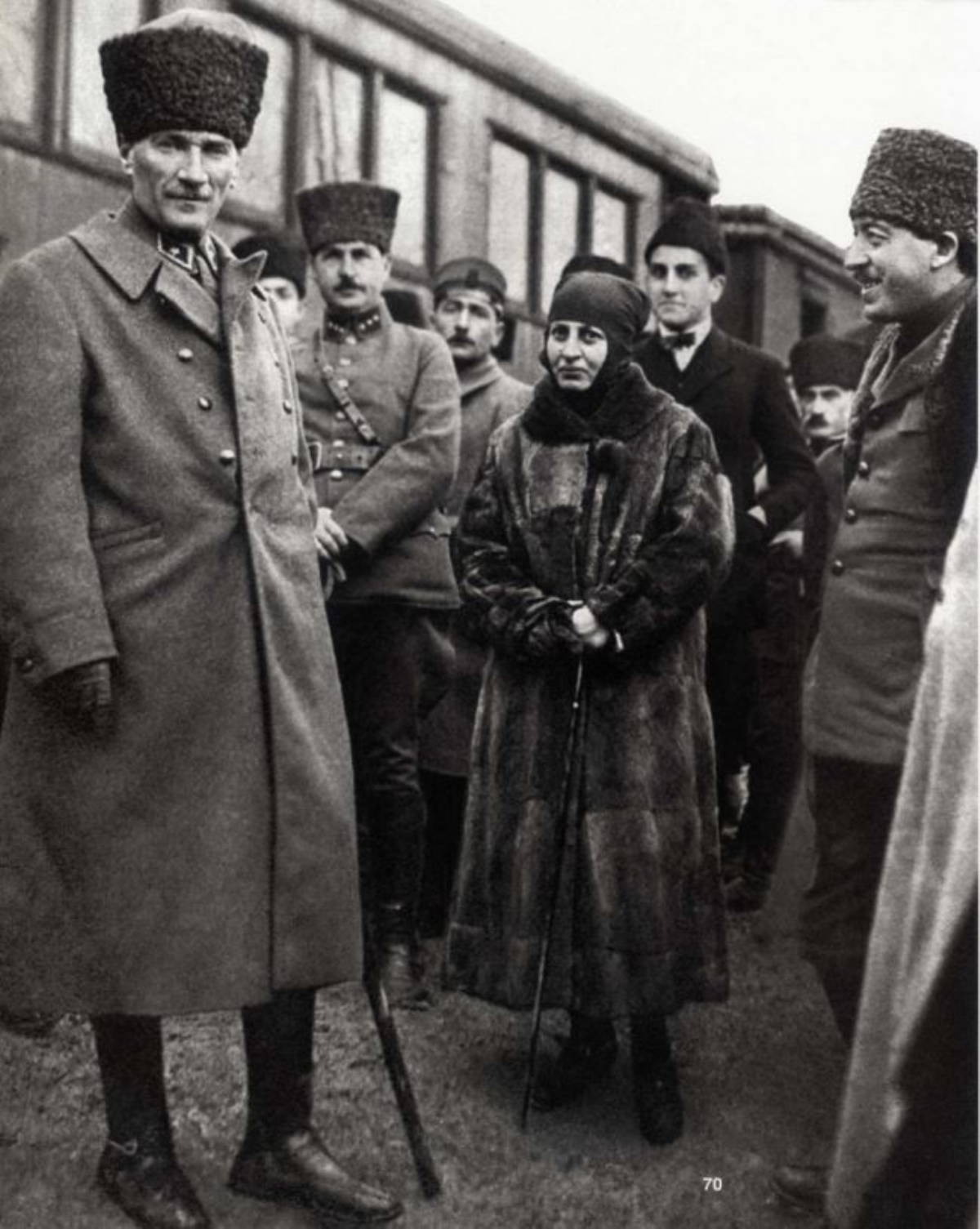 Halide Edib Hanım ve arkasında gazeteci Mecdi Bey, sağda Bolu Mebusu ve Paşa’nın yaveri Cevat Abbas Bey. 17 Ocak 1923