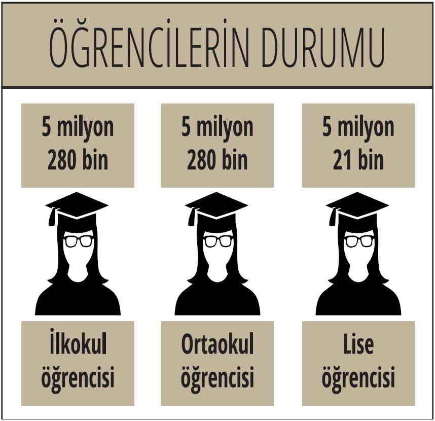 Aşağıda ilkokul, ortaokul ve lisede okuyan öğrencilerin sayıları verilmiştir.