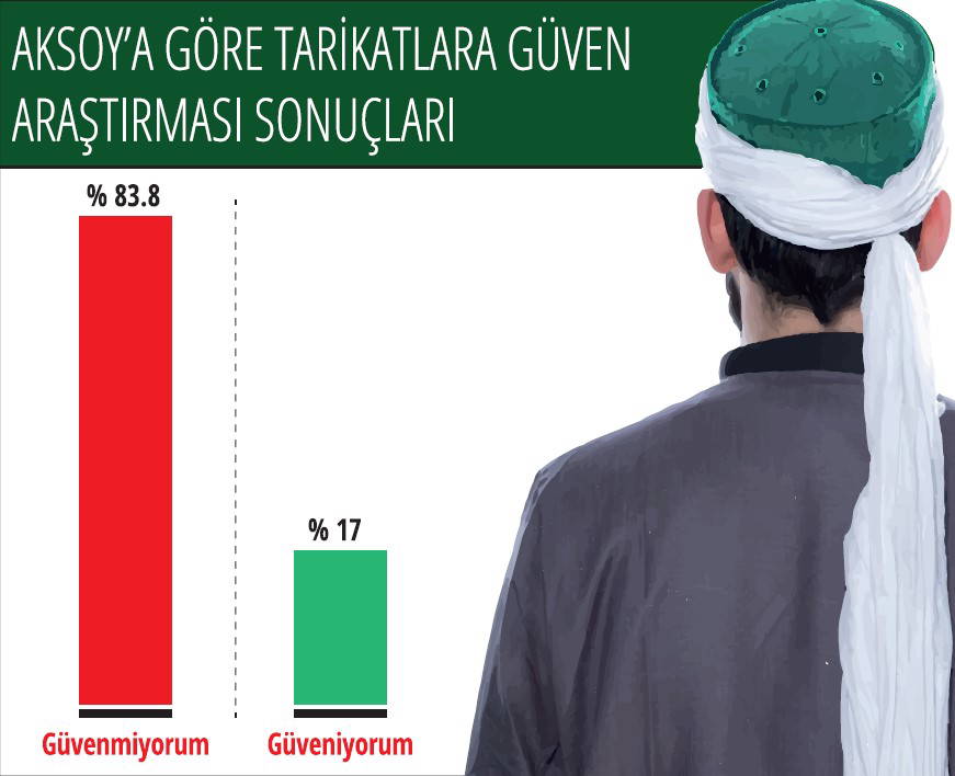 Bu araştırma sonuçlarına göre toplumun yüzde 83.8’e ulaşan çoğunluğu tarikatlara karşı çıkıyor.