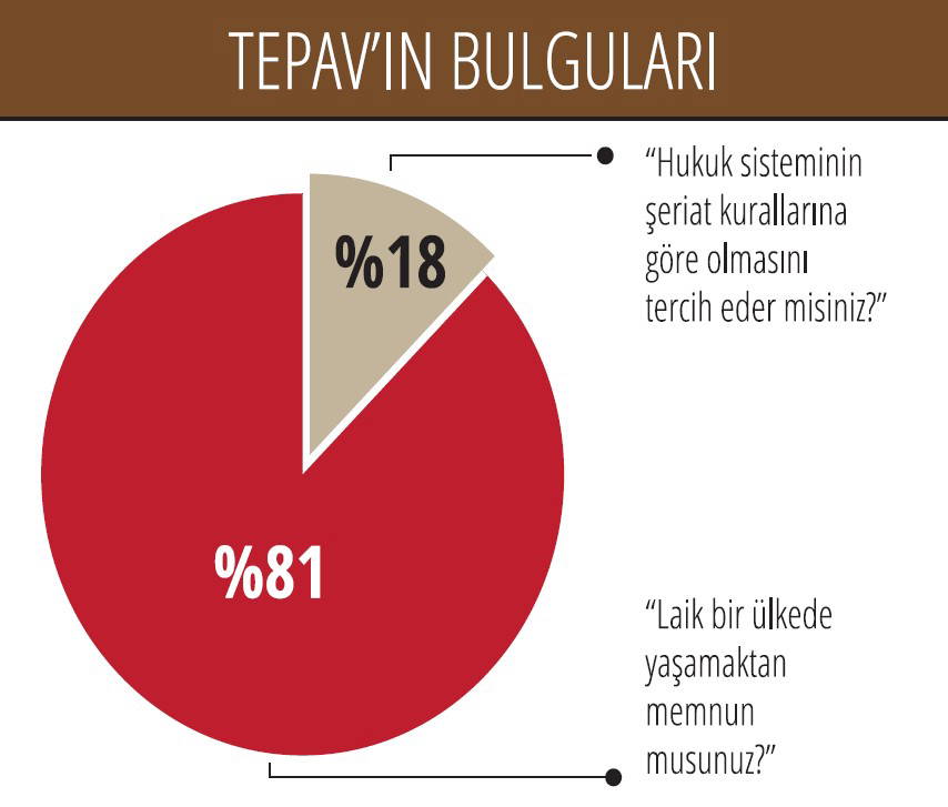 2016’da yapılan araştırmada “laik ülkede yaşamaktan memnun olanların” oranı yüzde 75 olarak çıkarken, 5 yılda “laik yönetimden memnuniyet” oranı yüzde 6 artmış.