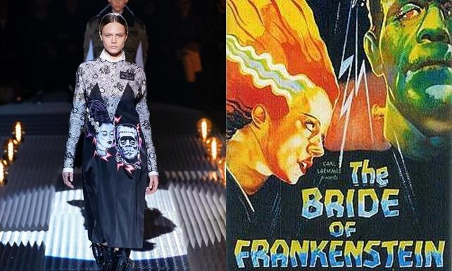 2019 Sonbahar-Kış koleksiyonlarında Prada, Gucci, Undercover gibi markalar sinemada kullanılan korku öğelerini podyuma taşıdılar. Moda dünyasının kadın kahramanlarından Prada markasının baş tasarımcısı ve CEO’su Miuccia Prada, 1931 yapımı Frankenstein ve 1935 yapımı Frankenstein'ın Gelini filmlerinden aldığı ilhamla, sanatçı Jeanne Detallante’in Frankenstein canavarı çizimlerini koleksiyonunda kullandı. Elbette Frankenstein'ın gelini Elsa Lanchester’ın kült saçlarıyla yarattığı stilin etkisi, romantizm ve aşk anlayışını sorgulamak üzere podyumdaydı.