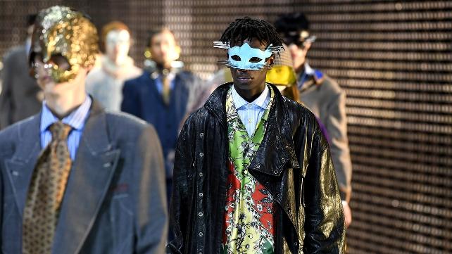 Gucci markası 13. Cuma filminin etkisini taşıyan maskeler, deri ceketler, çiviler, geniş vatkalar ile erkeklerin korunma ihtiyacını sorgular gibiydi.