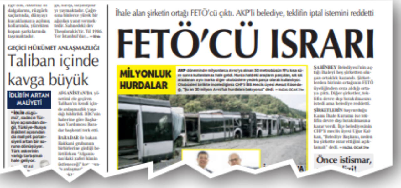 “MASAK raporunda ‘FETÖ ile ilişkisi olduğu’ kayıtlara geçen ve Emniyet Genel Müdürlüğü’nce ihale dışı bırakılan Kaya Tur adlı şirketin, Türk savunma sanayisinin stratejik kuruluşlarından biri olan Roketsan’dan iş aldığı ortaya çıktı. Firma, yaklaşık üç aydır Türkiye’nin ulusal roket, füze araştırma ve üretim programlarını üstlenen Roketsan’ın Ankara’da görev yapan personeline ulaşım hizmeti veriyor.”
