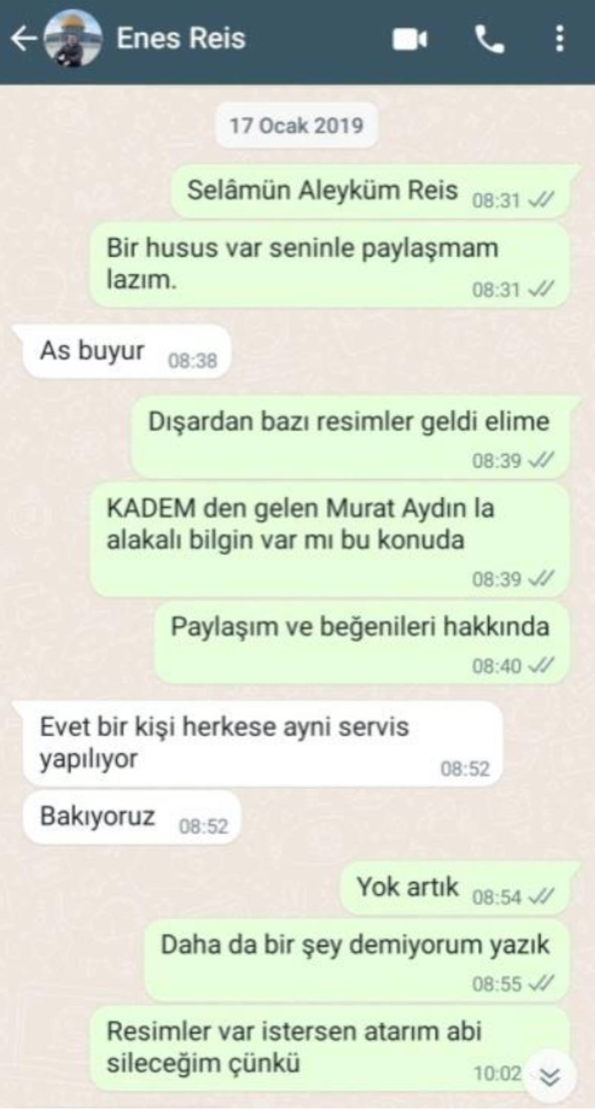Dönemin TÜGVA yöneticilerinden Murat Aydın’a dair bir iddia da Ramazan Aydoğdu tarafından Genel Başkan Enes Eminoğlu’na gönderiliyor: