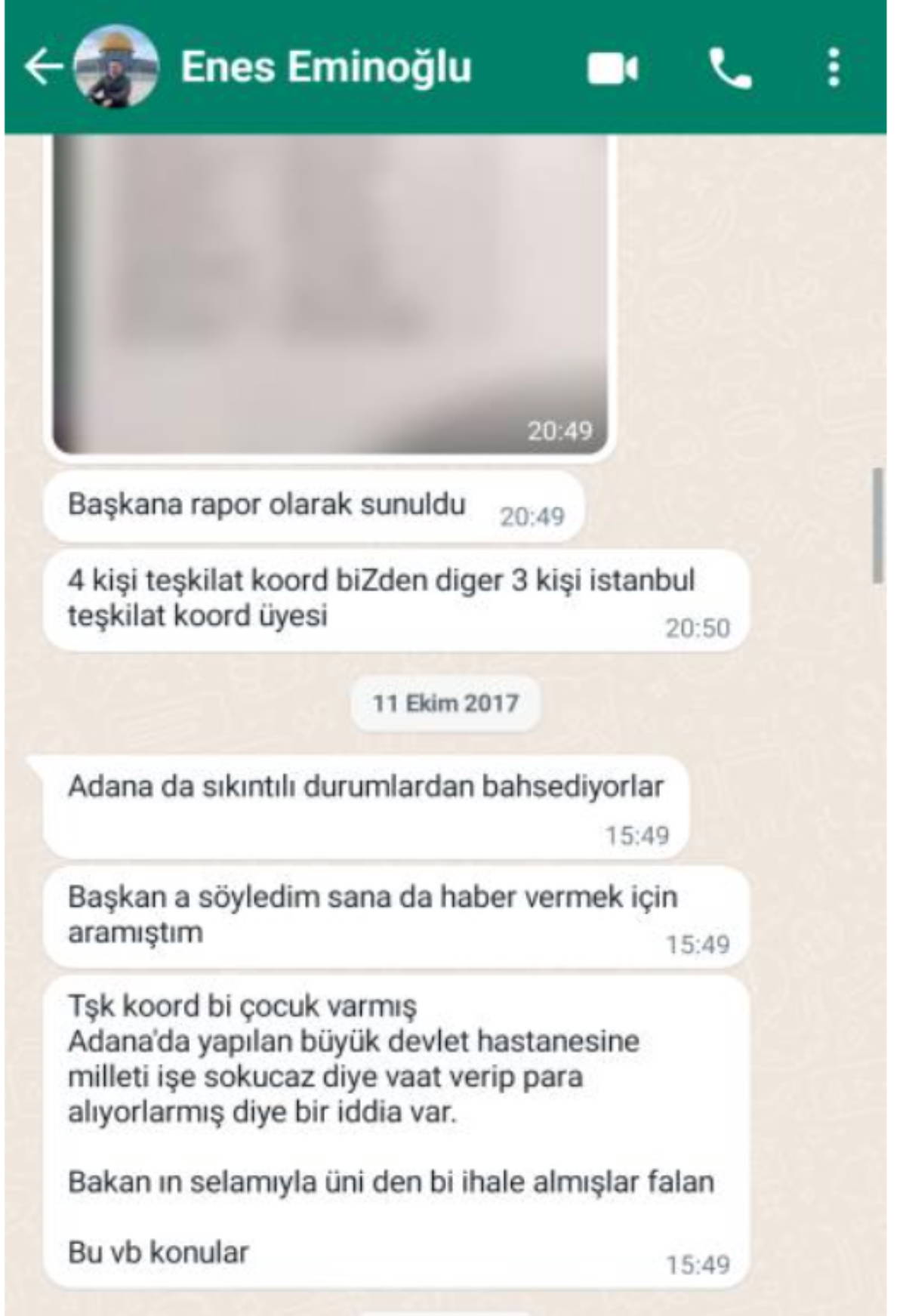 “Söz konusu ihbarda, TÜGVA’da görevli Adana teşkilat koordinatörünün, Adana Devlet Hastanesi’ne işe sokacağını vaat ederek milletten para aldığı, o dönem bakan olan Ömer Çelik’in adını kullanarak üniversiteden ihale aldığı ve benzer konular olduğu görülmektedir.”