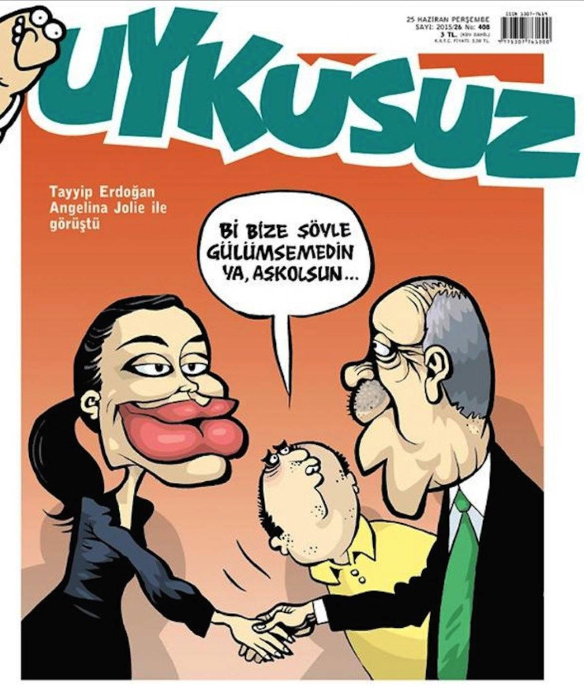 En manidar eleştiriyi ise 25 Haziran 2015’te Uykusuz Dergisi yaptı. Erdoğan ile Jolie’nin fotoğrafını kapağına taşıyan dergi, bir Türkün ağzından “Bi bize şöyle gülümsemedin ya, aşkolsun” diyecekti.