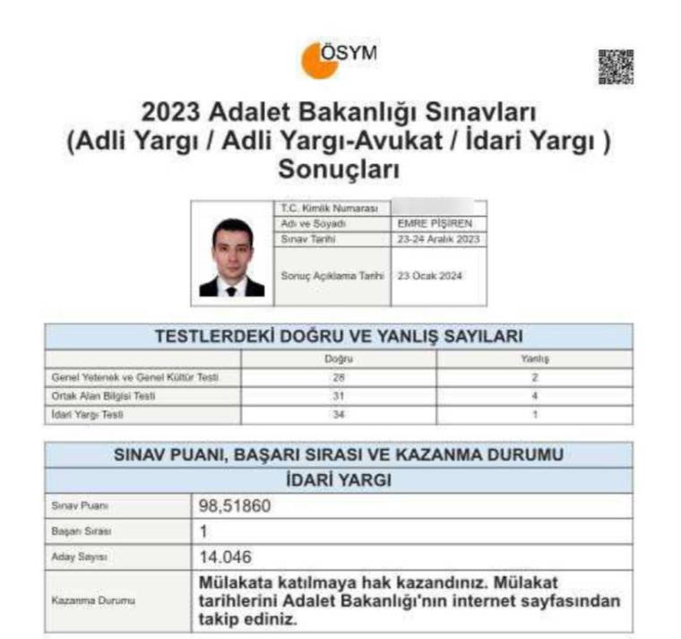 Emre Pişiren; Ankara Üniversitesi Siyasal Bilgiler Fakültesi Siyaset Bilimi ve Kamu Yönetimi Bölümü’nden 2018 yılında mezun olmuş. 2021 yılında yapılan İdari Yargı Hâkim Adaylığı Yazılı Sınavı’nda Türkiye 8.’si olmuş. Ancak mülakatta elenmiş. Vazgeçmemiş. 2022’de sınava tekrar girmiş. Bu kez Türkiye 1.’si olmuş. Mülakatta yine elenmiş. Yine vazgeçmemiş. 2023’te sınava tekrar girmiş. Bu kez 98.5 puan ile rekor kırarak yine Türkiye 1.’si olmuş. Geçen 29 Haziran’da ilan edilen mülakatta yine elenmiş. “Artık yeter” diyerek hakkını mahkemelerde aramaya karar vermiş.