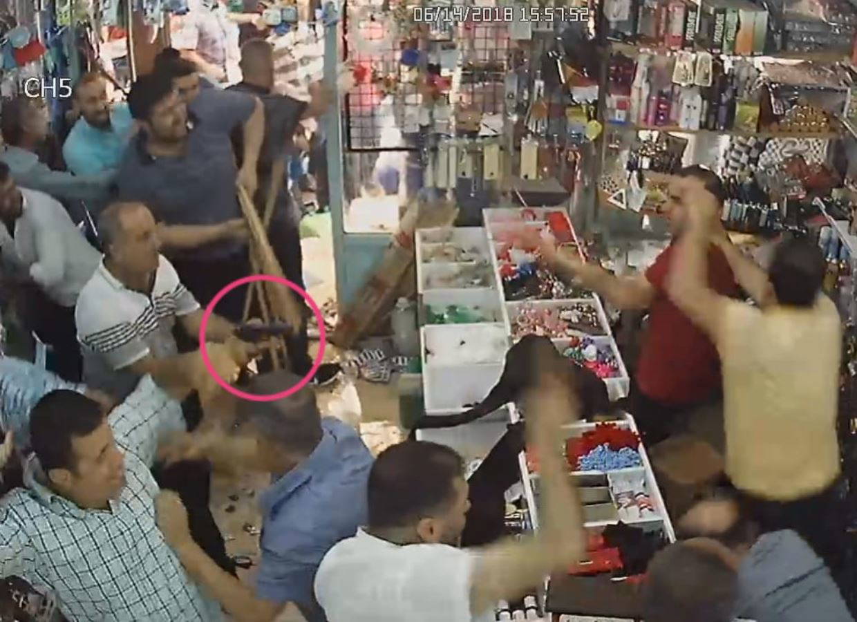 Olay anının fotoğrafı, dükkan sahiplerinin saldırıya uğradığını gösteriyor.