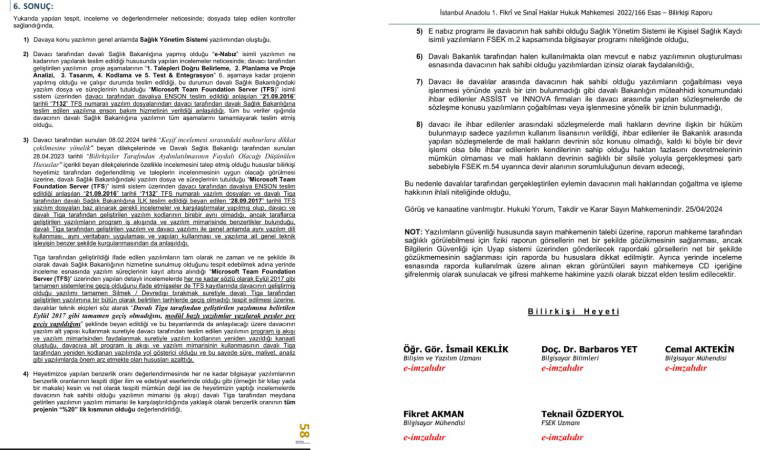Elbette hakimler bu düzeyde bilgisayar bilmiyor. Konuyu bilişim uzmanlarına havale etmişler. Hazırlanan 5 kişilik bilirkişi heyeti raporu, E-Nabız’ın kopyalanarak yeni bir yazılım üretildiği, bunun bir ihlal olduğu kanaatine varmış.