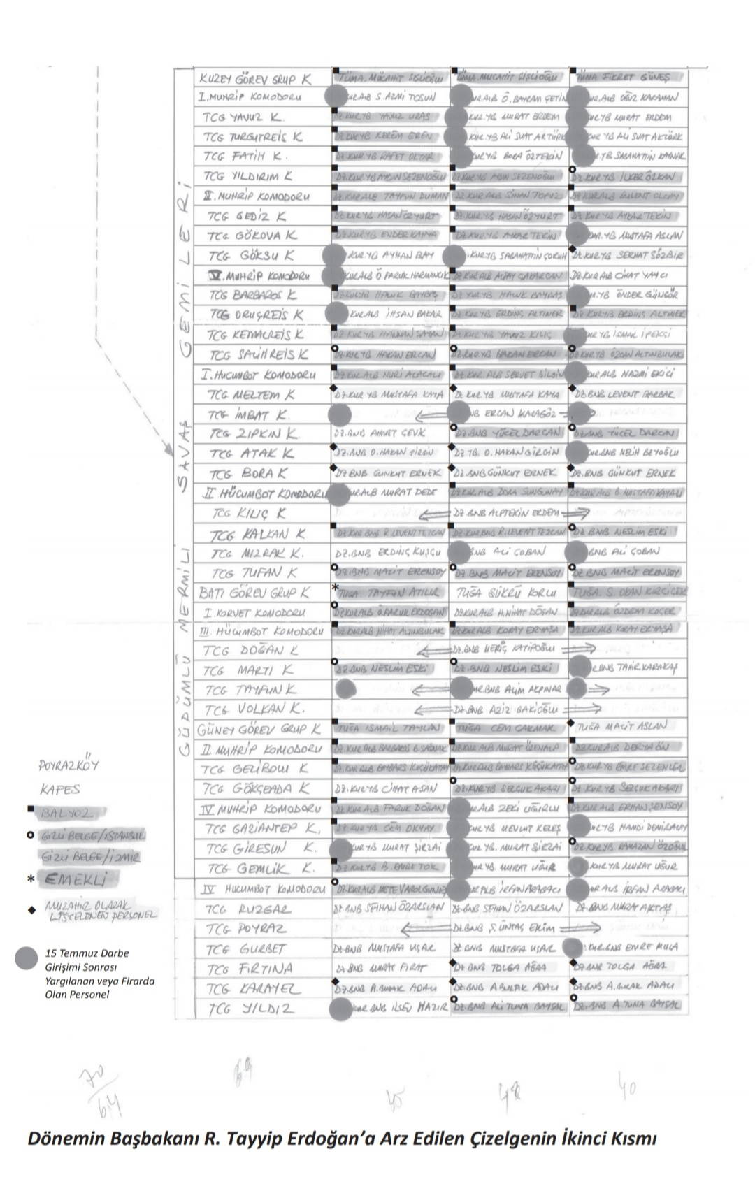 - 2011-2012’de gemilerin komutanları ile o gemilerin personelini yetiştiren eğitim kurumlarındaki 69 kadrodan 40’ı kumpas davalara bulaştırıldı. (Kalan 29’undan 21 kişi halen 15 Temmuz kalkışması nedeniyle yargı önünde.)”