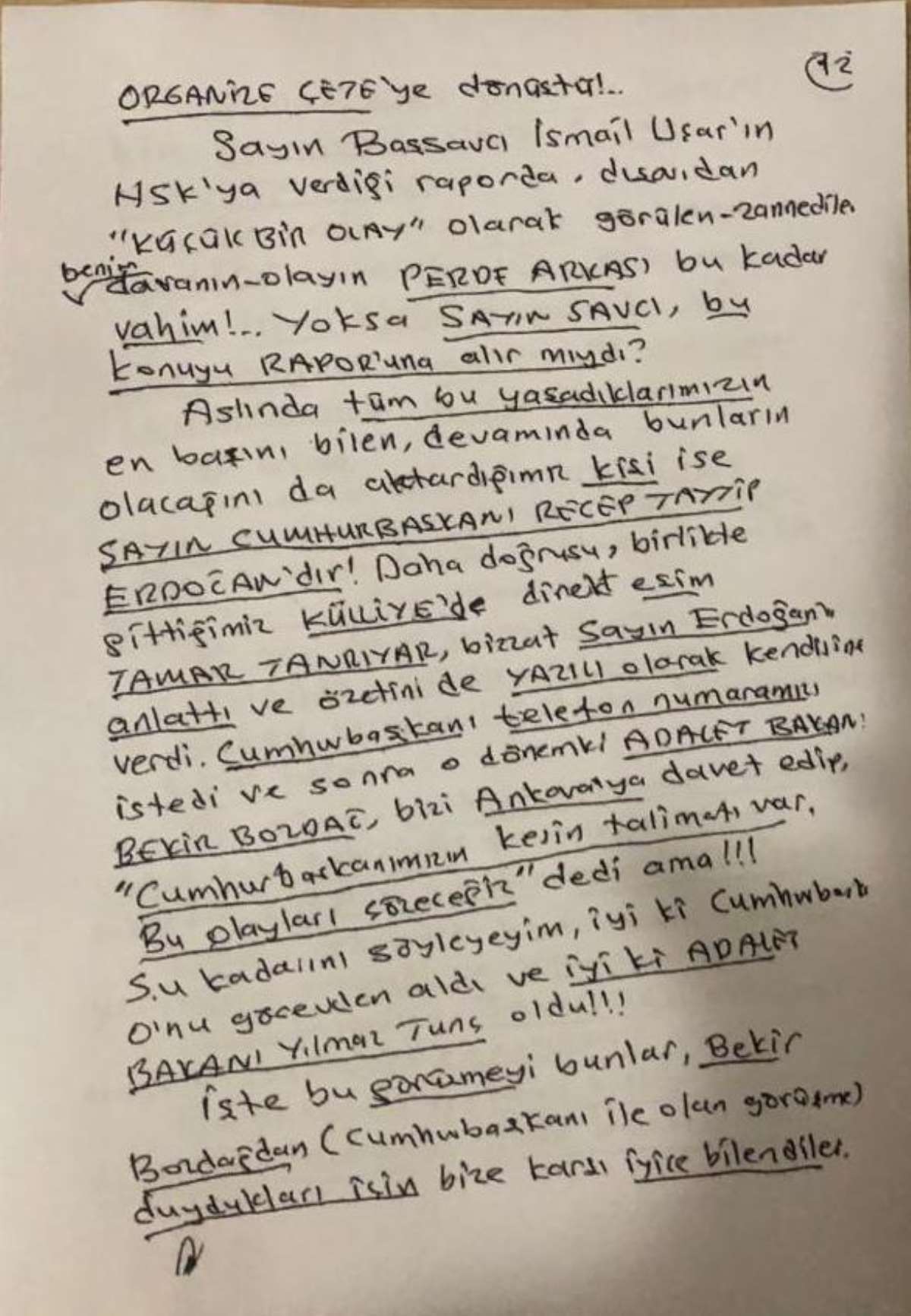 (Can Tanrıyar’ın Erdoğan’la görüşmesini anlattığı dilekçe)