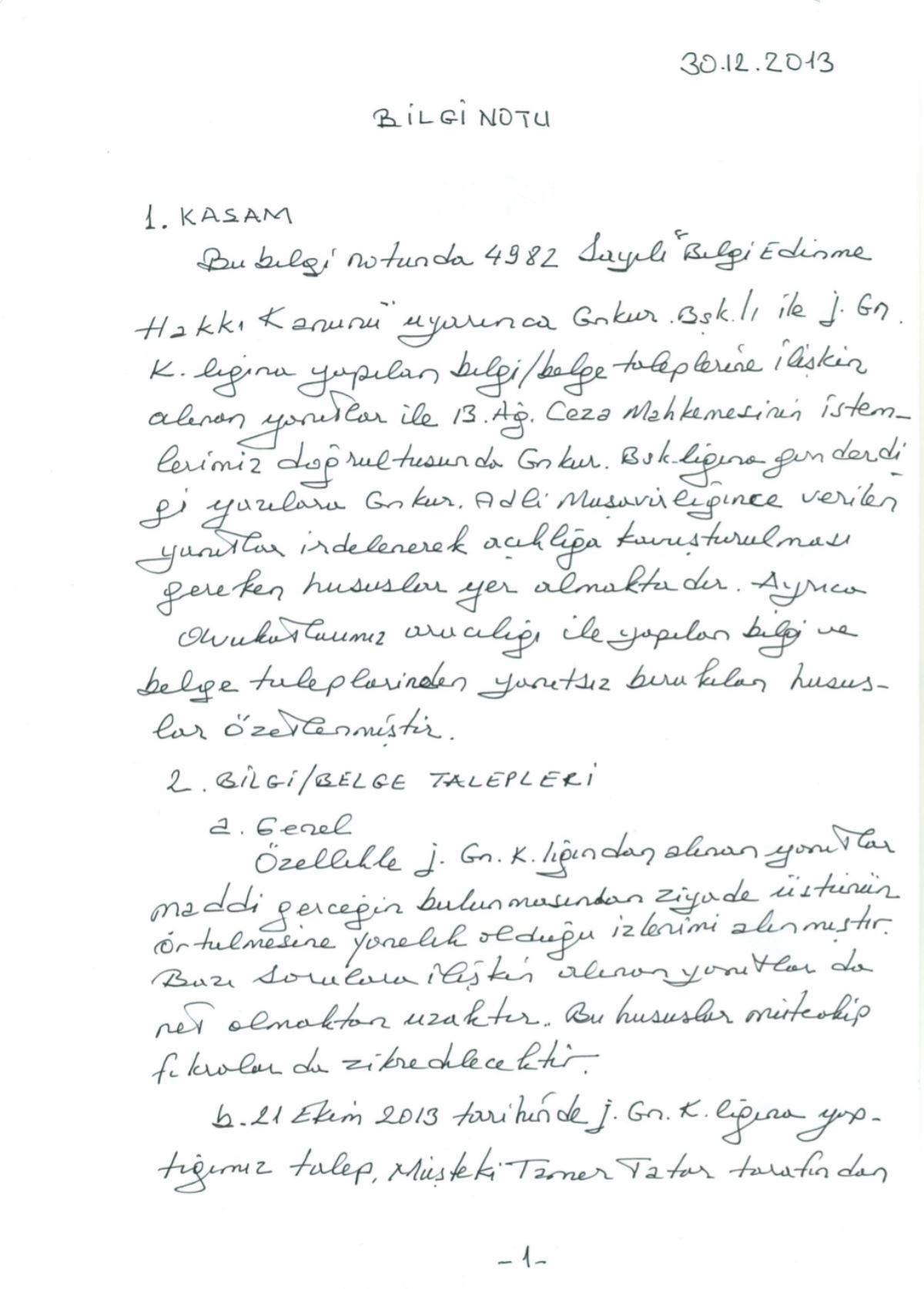 Doğan, mektubu ekinde 11 sayfalık bir de bilgi notu da hazırlamış. Bu bilgi notunda 28 Şubat davasına konu olan dijital belgelerdeki sahtelikleri anlatırken, Genelkurmay Adli Müşavirliği’nin bunun açığa çıkmaması için nasıl çabaladığına örneklerle yer verilmiş.