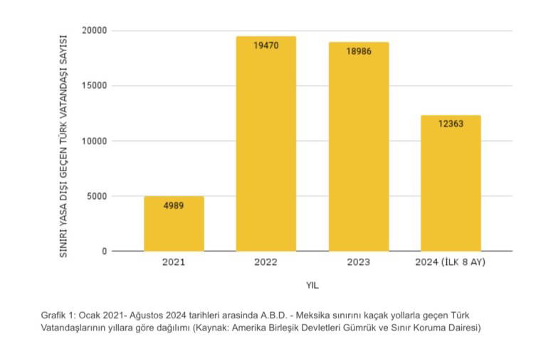 ABD Gümrük ve Sınır Koruma Dairesi’nin resmi verilerine göre, Ağustos 2024 itibarıyla, toplam 55 bin 808 Türk vatandaşı, kaçak yollarla Meksika’dan ABD’ye girerken yakalandı.