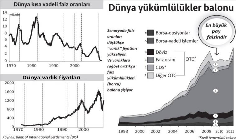 Unutmayalım, “varlık enflasyonu” olmazsa “yükümlülük yönetimi” yapılamaz. “Yükümlülük yönetimi” kapitalizmin yeni senaryosunda bel kemiği oluyor. Sermaye mülkiyetini büyütmek için var olan piyasalar bu “yönetim” ile işler. “Yükümlülük yönetimi” sürekli olarak kendine kredi yaratır, yeni “faizler” yaratma becerisiyle can bulur ve devam eder ve artar. Son otuz yılda böyle oldu ve dünya çapında “faiz yükümlülüğü” kartopu gibi arttı ve artıyor. Kapitalizmin balonu buradan üflenerek şişiyor. Faiz bu senaryo ile ekonomilerin temel fiyatı oluyor. “Varlık enflasyonu” da mal ve hizmet enflasyonunun sütannesi!