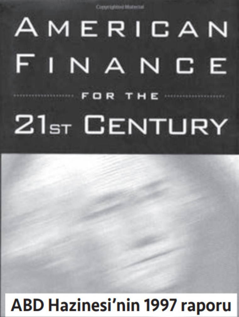 “Ağa devlet”in başrole sahip iki kurumundan Hazine (Treasury) 1997’de bir çalışma raporu çıkarıyor: 21. yüzyılda Amerikan Finansı (American Finance for the 21st Century). Diyor ki eğer finans kurumlarının elini bağlarsak, şunu yap ama bunu yapma dersek (finansta “failure prevention”) bunun hem ekonomiye maliyeti büyük olur hem de Amerika’nın potansiyel dünya liderliğini engelleriz. Peki, ne lazım? Finans üzerinde denetimi hafif tut, yokmuş gibi. Onun “kabına sığmayan büyümesi”ni (“mercurial growth”) kesme. Krizler olabilir ama doğru olan “kalan sağlar bizimdir” (“failure containment”) politikasıdır!