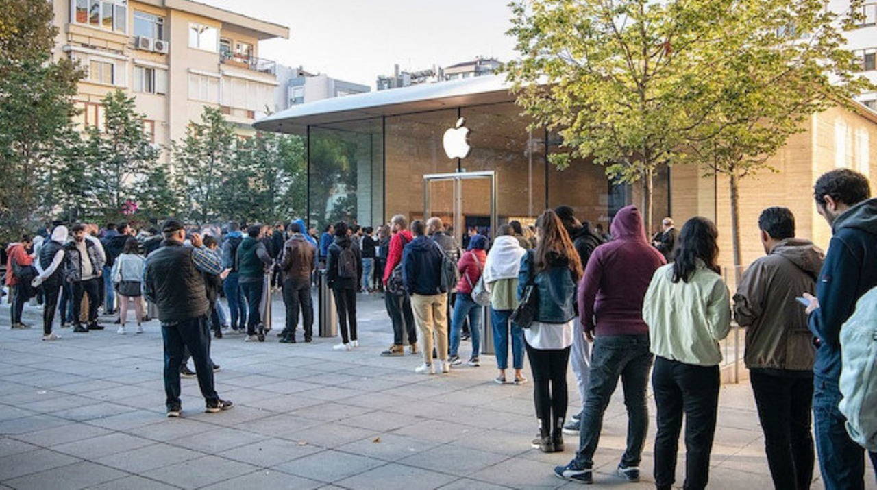 (Iphone’nun yeni modeli için uzayan kuyruk.)