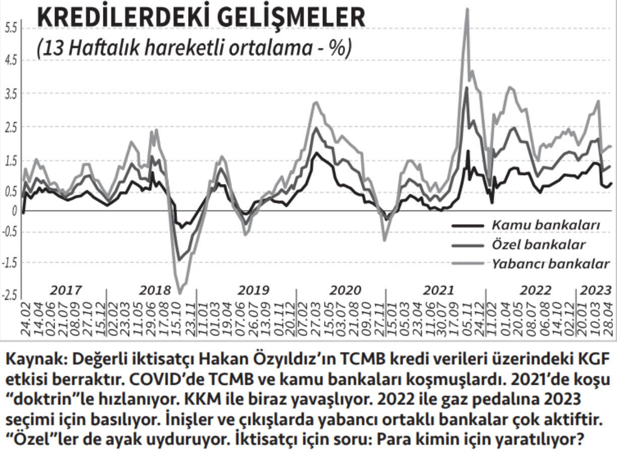 Yukarıda vurguladım, dolarlaşıyor, fakat kendisi yeterli dolar üretemiyor. (Nedenlerine bugün girmeyelim.) 2015-2016’ya gelince ufukta kara bulutlar belirdi. Birinci bolluk dönemi kapanıyordu. 2007’de dolar bolluğu iktidara şekil vermişti. O bolluk bir daha olamazsa ne olacak? İktidar sona mı erecek? (Not: Sermaye sınıfı, öncelikle ticaret-siyaset zincirlerini ören ticaret ve kısmen de finans sermayesi buna hazır ve razı mı?) Çare ikinci “bolluk” dönemini açabilmektedir: TL’yi “bollaştırarak” iktidarın tazelenmesi. Kaynak elbette önce Hazine’dedir: İcadın adı kredi garanti fonu (KGF). Tarih 2017. Çünkü 2018 yazında seçim var. Kullandırılan kaynak 10 milyar TL’den birden 214 milyara çıkacak! Siyasete oy olarak dönmek üzere sermaye “zincirleri”ne kredilenmiştir. 2021 sonbaharında başlatılan “bol ve ucuz TL” senaryosu o pilot proje ile oradan başlıyor. Elbette, ilgililerin işin özünü doğru anlaması için “yeni bolluk” senaryosunun en yetkili ağızdan açıklanması, yani “doktrinleşmesi” lazım. O da 15 Mayıs 2018’de seçimden bir hafta önce CNN Türk’te duyulacaktır: “Faiz sebep, enflasyon neticedir!”
