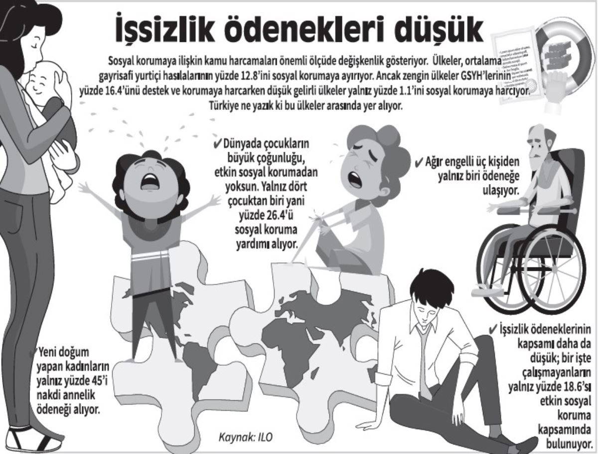 Dünya Sosyal Koruma 2020-22 Raporu’na göre şu anda 4.1 milyar insan yani dünya nüfusunun yüzde 53’ü ulusal sosyal koruma sistemlerinden hiçbir gelir güvencesi elde edemiyor, dünya nüfusunun yalnız yüzde 47’si etkin olarak en az bir sosyal koruma yardımından yararlanıyor.