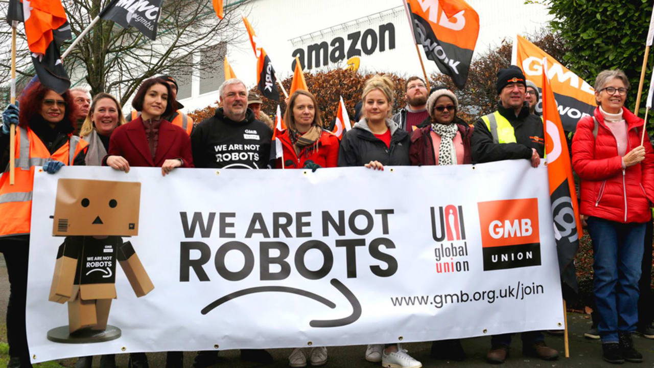 - İngiltere GMB sendikası Amazon için çalışan depo işçilerini, kuryeleri ve teknik görevlileri temsil ediyor. Amazon, sendikacılığın doğduğu ülkede sendikal hakları tanımıyor. 600 bin üyeli GMB, şirketi masaya davet ediyor, “aksi halde Jeff Bezos bir dahaki sefere uzaydan dünyaya geri dönemez” diyorlar.