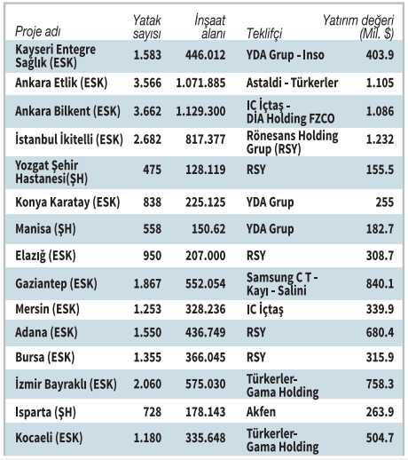 1- Yabancı menşeli (ABD) yönetim danışmanlık şirketi Frost & Sullivan tarafından hazırlanan ve https:// ww2.frost.com/frostperspectives/analysis-public-private-partnershipppp-hospital-campusesconstruction-programmeturkey/internet adresinde, Haziran 2015 tarihinde yayımlanan “An Analysis of Public-Private-Partnership (PPP) Hospital Campuses Construction Programme of Turkey” isimli raporda yer alan tabloda; ülkemizde yapılmış veya yapılması planlanan 15 Şehir Hastanesine ait yatırım maliyetlerinin miktarları belirtilmektedir.