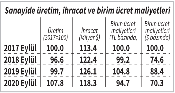 Son üç yılda sanayi üretim ve ihracatı özet olarak yerinde saymıştır. Sanayi üretiminde bu yılın eylül ayındaki görece artış, sürdürülebilir bir büyüme hamlesinden ziyade, pandemi koşullarında önce kısıtlanan, sonra birdenbire açılan ulusal ekonominin iniş çıkışlı dalgalanmalarına ve birim ücret maliyetlerindeki çöküşe bağlanmalıdır.