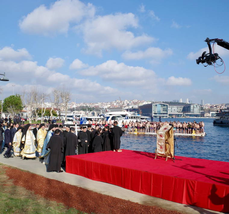 Patriğin gelişi her yönüyle bir film sahnesi gibiydi. Patriğin, rütbe olarak ceketinin omuz bölümüne büyük bir haç dikilmiş baş korumasının, bariyer arkasından atılan bir lafa kızgınlıkla bakarak yanıt vermesi buram buram bizim coğrafya kokuyordu. Cemaat duaları büyük bir dinginlikle dinledi. Sonuna doğru halktan katılanlar oldu. Derken ne olduğunu anlamadan hemen kıyıda suyun içinde bir kargaşa başladı. Patrik haçı ustaca fotografçıların hemen önüne atmış ve o kapışma sahnesinin netlikle karelere girmesini sağlamıştı. Soğuk sudan çıkanlar peçetelere(!) sarılıp Patriğin elini öperek hayır dualarını aldılar. Patriğin, bir ara arkasını dönüp halkı kutsamasından biz de nasibimizi almıştık. Patrik tören alanını yürüyerek terk ederken haç ve ezan sesi birbirine karışmıştı…