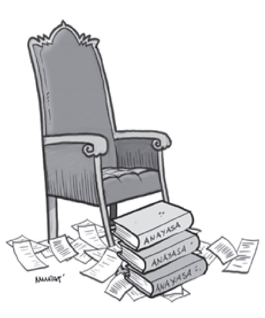 Koskoca, taçlandırılmış Saray bu, şakaya gelmez. “Demokrasi rafa kaldırıldı, ülkeyi cunta yönetiyor” filan demeyecek, muhalefet etmeyeceksin.