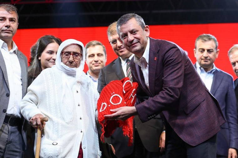 CHP İzmir örgütünün en yaşlı üyesi Nuriye Koç, genel başkanına armağan etmek üzere kendi elleriyle ördüğü atkıyı, İzmir buluşmasında CHP Genel Başkanı’nın boynuna yine kendi elleriyle taktı. Özel, yaşlı üyenin elini öperek teşekkür etti.
