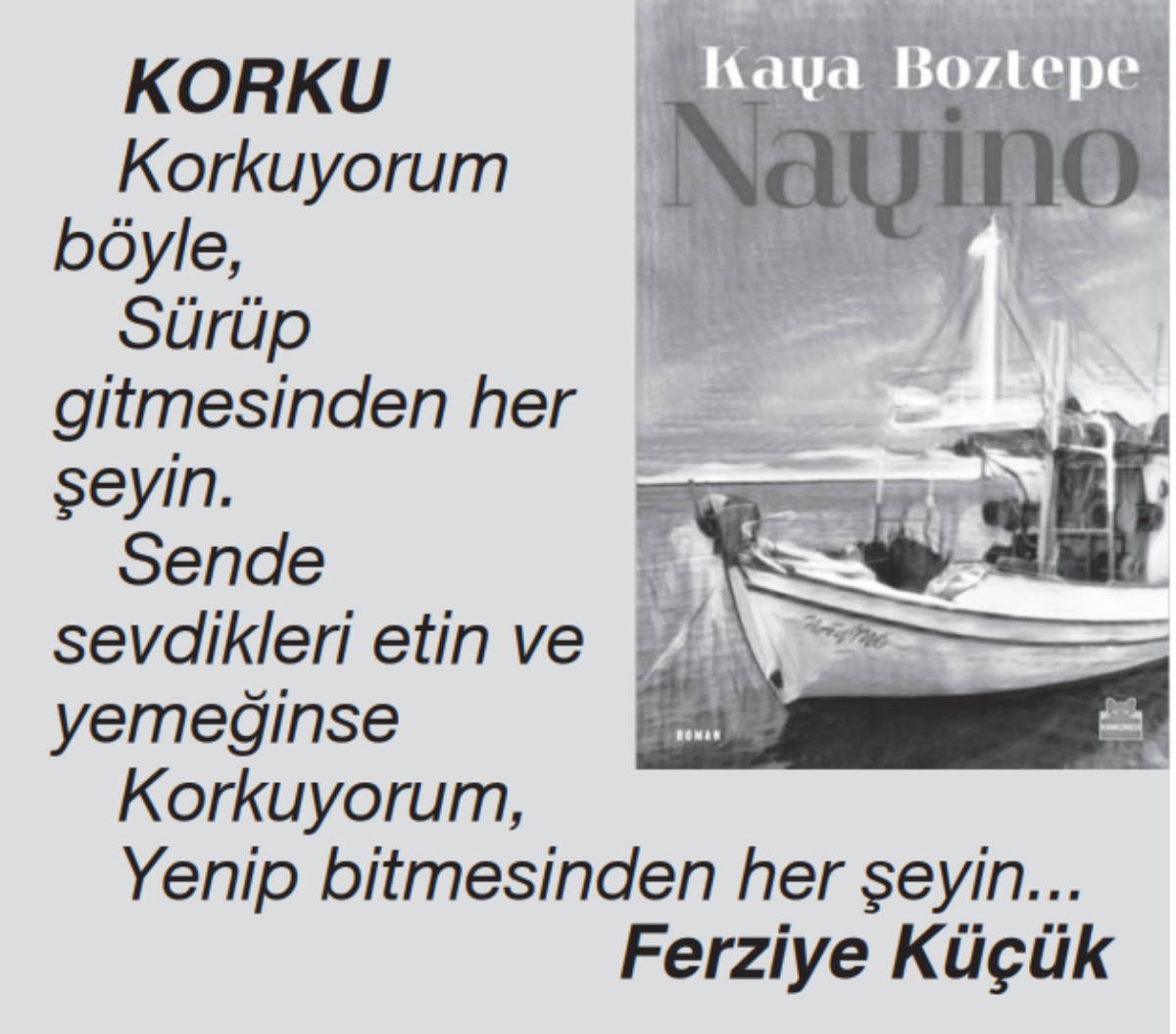 Bu yazının başına alıntıladığım güzel betimlemeyle başlayan Nayino, Kaya Boztepe’nin ilk romanı. Bir aşk acısının bazen kahkahalarla okuyacağınız öyküsü ama, ilginç yanı yazarın kendi yaşadığı ya da kurguladığı bir aşkı değil, çok sevdiği babasının annesinden başka bir kadına aşkını konu alması.