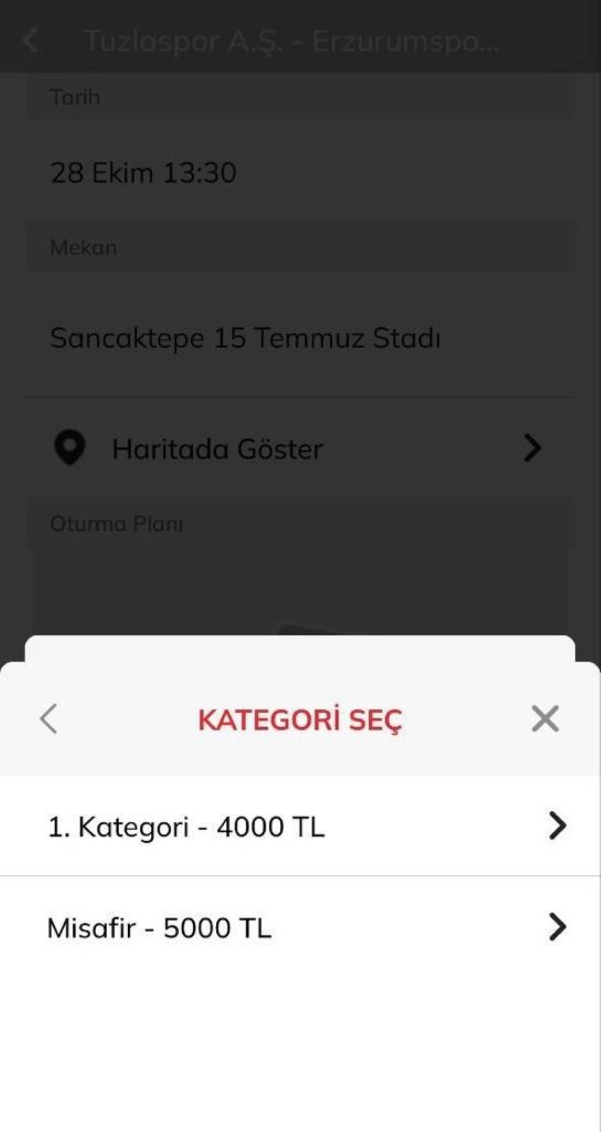 Tuzlaspor maçında biletler konusunda ileri sürülen iddiayı inceledim. Passolig uygulamasından Tuzlaspor-Erzurumspor maçına bilet almaya çalıştım. Passolig ekranında misafir takım 5 bin TL, ev sahibi takım taraftarı için 4 bin TL olarak belirtiliyor. Biletlerin çok büyük bir kısmı satılmış durumdaydı. Ancak maçı izlediğimde tribünde 3-4 taraftarın maçı izlediğini gördüm. 4 bin TL’ye bilet alıp maça gelmeyen olur mu?