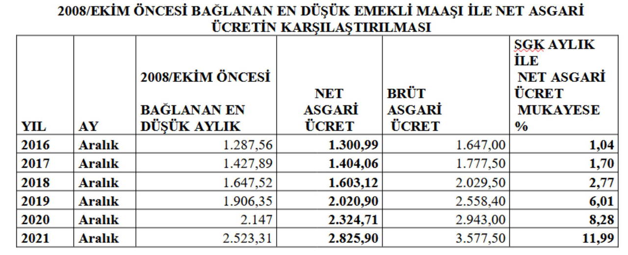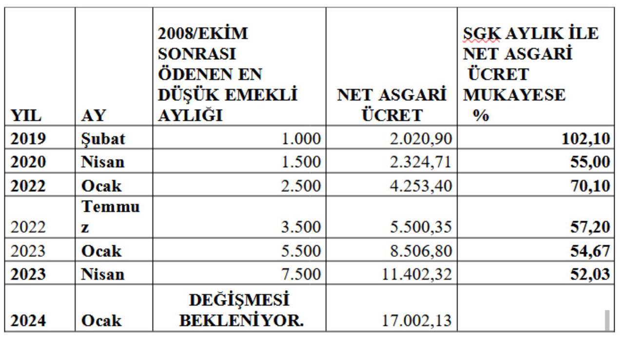 EN DÜŞÜK EMEKLİ AYLIKLARI İLE ASGARİ ÜCRETİN KARŞILAŞTIRMASI