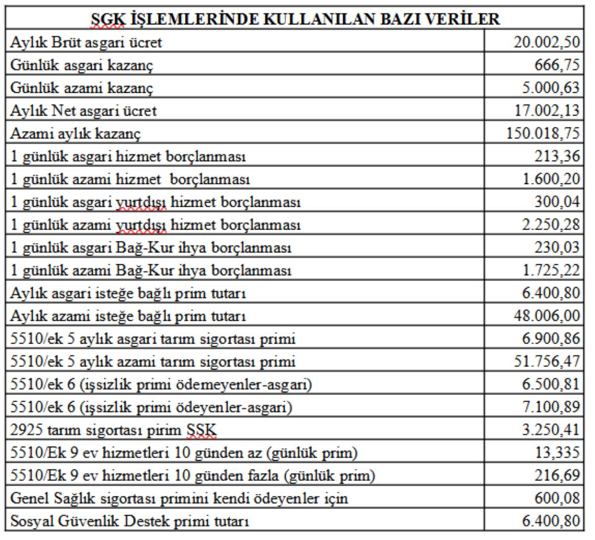 Belirlenen yeni asgari ücrete göre Sosyal Güvenlik Kurumuna (SGK) yapılan bildirim ve prim ödemelerinde esas alınacak tutarlar aşağıdaki şekilde değişti.