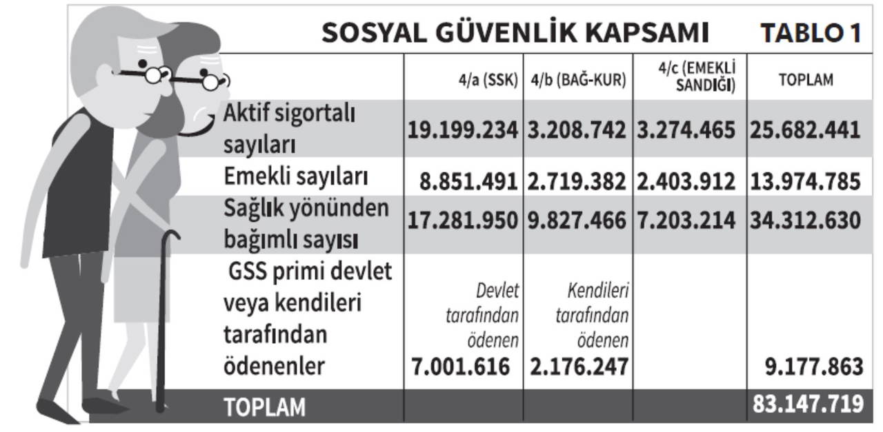 Sosyal Güvenlik Kurumu (SGK) internet sitesi 2023/Şubat dönemi verilerine bakıldığında, ülkemizde sosyal güvenlik sisteminde yer alan sigortalı ve bağımlıları statü bazında aşağıdaki Tablo 1’de gösterildi.