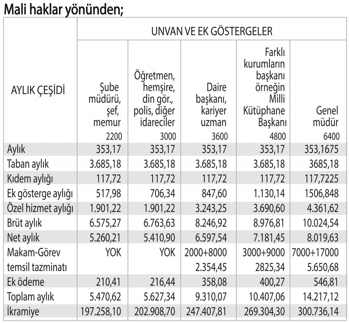 Ancak, 2200 göstergeli ve özel hizmet aylığı oranı yüzde 85 olan şube müdürleri bir üst ek gösterge olan 3000’e yükseltildiklerinde, özel hizmet aylığı yine yüzde 85 olarak kalacak sadece ek gösterge değişikliğinden dolayı aylık artışı 155 TL olacak. Ek gösterge ve maaş yönünden şube müdürleri yine amirleri oldukları hemşire, din görevlisi vb. altında kalacak.