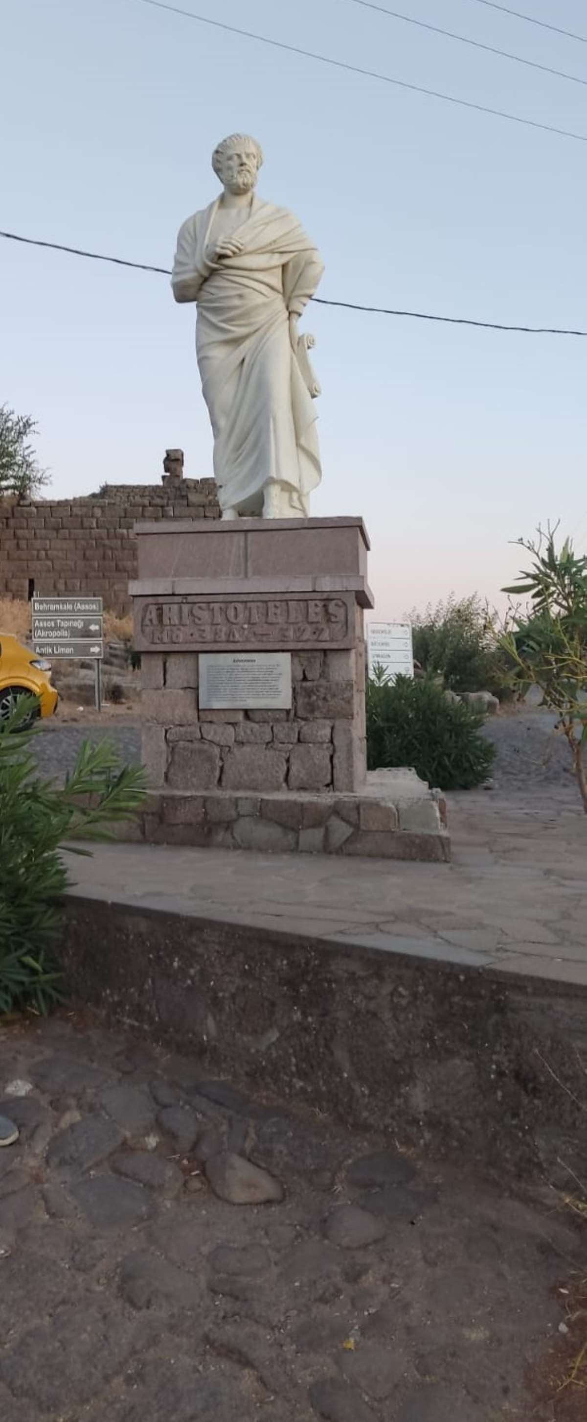 Behramkale sadece tatilcilerin değil arkeoloji ve felsefe ile ilgilenenlerin de mutlaka uğraması gereken bir nokta. Aristoteles’in 3 yıl yaşadığı bu köy ünlü düşünürün ilk felsefe okulunu kurduğu yerleşim yeri olarak dünya tarihine geçiyor. Assos'ta bir felsefe akademisi kuran ve burada bir süre felsefe dersleri veren Aristo'nun heykeli Assos Antik Kenti girişinde bulunuyor. Behramkale'ye gittiğinizde bu önemli heykeli görmeyi unutmayın.