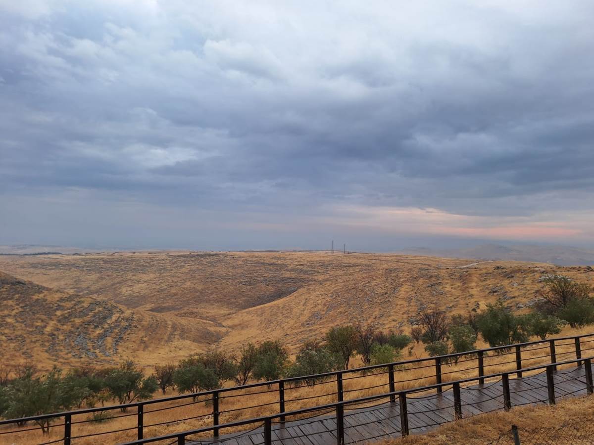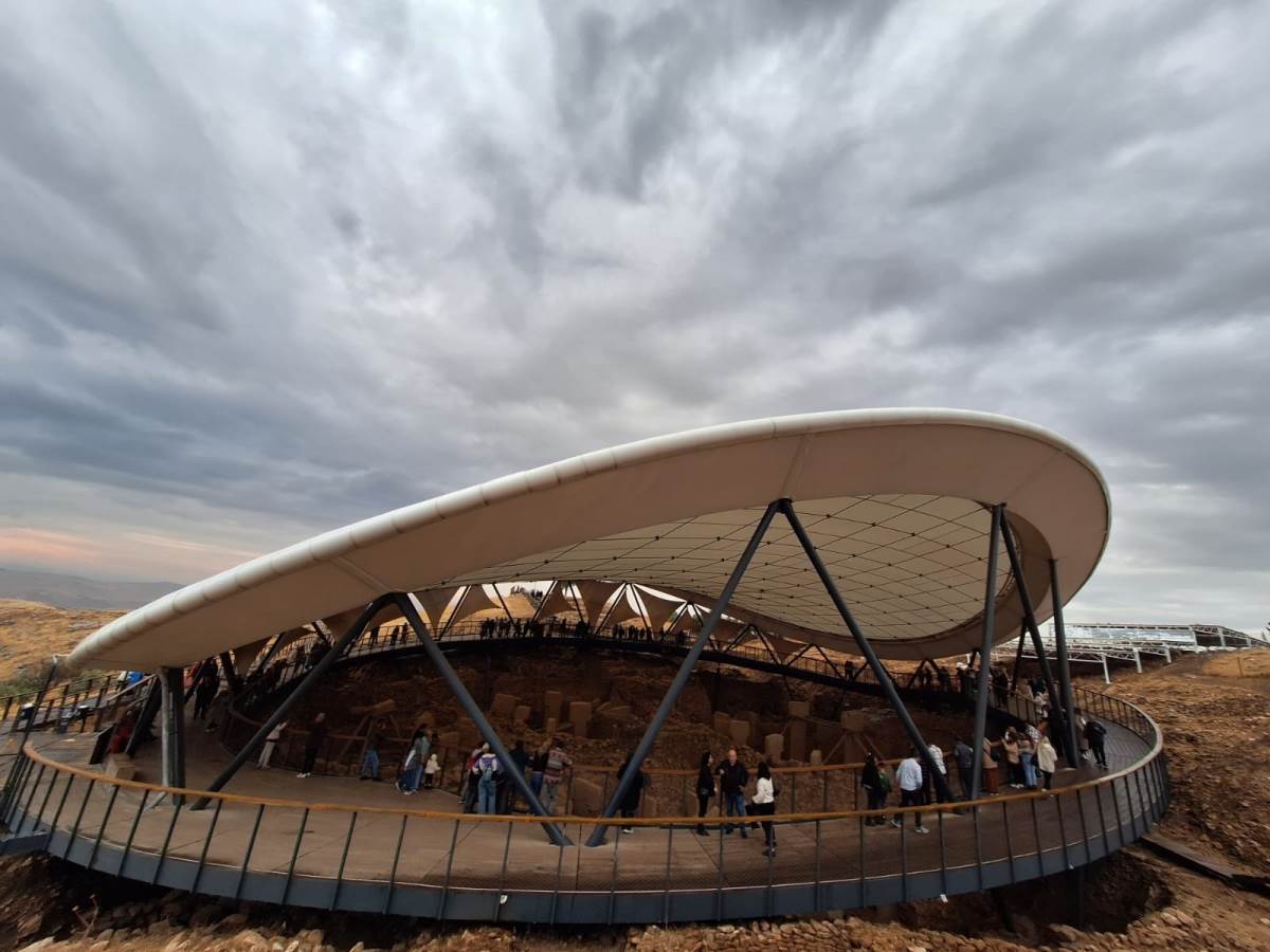 Ahşap bir yürüyüş yolunun sonunda servis araçları ziyaretçileri kazı yerine götürmek için bekliyor. İster bu servisleri kullanarak isterseniz de yürüyerek kazı alanına ulaşabilirsiniz. Biz havanın yağışlı olması nedeniyle servisi kullandık. 2-3 dakikalık bir yolculuk sonrası araçtan indik. Yine ahşap bir yolu takip ederek tarih ve arkeoloji tutkunları için dünyanın dört bir yanından gelen bir çağrı noktası olan Göbeklitepe'ye ulaştık.