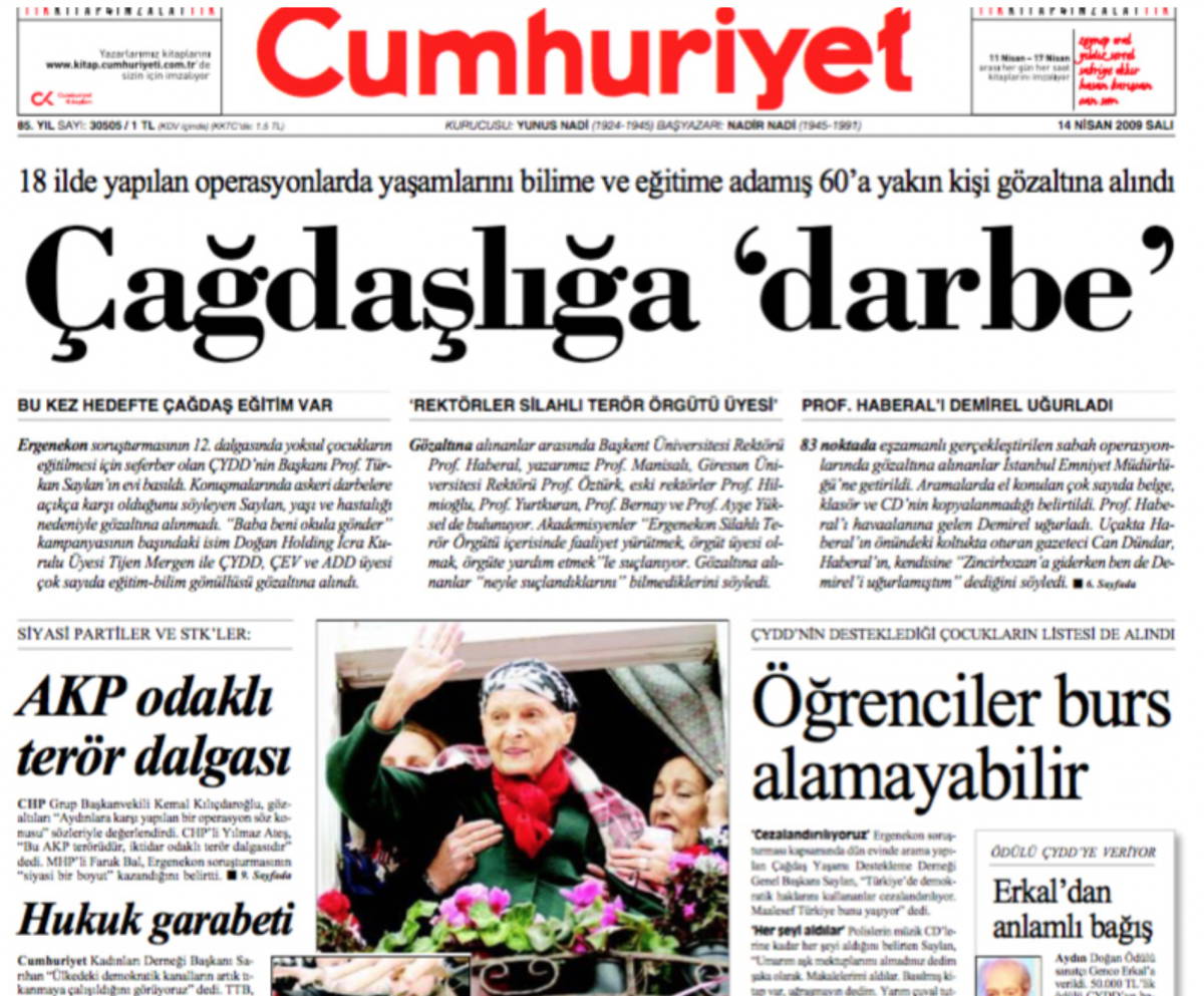 Onlara göre ÇYDD yok edilmeli idi, 13 Nisan sabahı ÇYDD Genel Merkez ve şubeleri, yöneticilerin ev ve işyerleri polis baskınına uğradı, gün boyu süren aramalar yapıldı. Efsane genel başkanımız Prof. Dr. Türkan Saylan, hasta idi. O sabah kemoterapi öncesi kan tahlili için eve hemşire gelmiş, kan örneği alıyorken kapısı çalındı, eve çok sayıda polis girdi. Ben de, hafta sonu Türkan hocamızı görmeye gelmiş, o günün sabahında, Sabiha Gökçen Havalimanı’nda göz altına alınmıştım. Bu kara günde olanı biteni bana Avukat Ali Gürbüz telefon edip önceden anlattığı için, ben de aile bireylerini arayıp bilgilendirmiştim. Türkan Hocamızla da konuşurken kapının çaldığına geldiklerine tanık olmuştum.