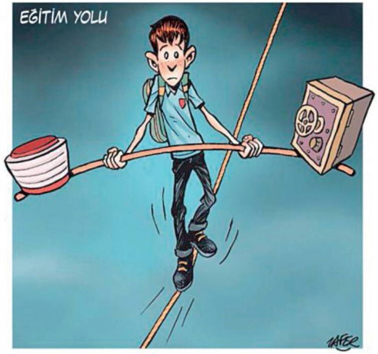 Sadece hafız çocuklar için bile olsa bu uygulama Öğretim Birliği’ne, anayasaya, Milli Eğitim Temel Yasası’na, altında imzamız bulunan Çocuk Hakları Sözleşmesi’ne aykırıdır. Var olan yasalara göre aynı anda bir çocuk hem MEB hem de DİB eğitiminden geçemez. Birçok kez yazdık eğitim bilimsel bir iklimde olur. Liseyi bitirdikten sonra çocuk isterse alanını geliştirmek için okuyabilir. Cumhuriyet bu haberi “Ya ucuz işçi ya da hafız” ana başlığıyla verdi. İktidarın yoksul aile çocuklarını iki seçenek arasında bıraktığını belirtti. Sanatçı Zafer Temoçin’in karikatürü de konuyu çok güzel işlemiş: Korkulu gözlerle bir yanda dinsel bir yanda kölelik seçeneği olan eğitim yolunda yürüyen çocuk... (Cumhuriyet, 21.8.2024)