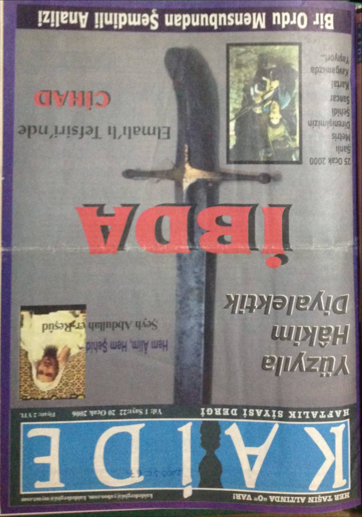 Bu bir dergi… 20 Ocak 2006 tarihli 22 sayısı... Kapağın tam ortasında dikine bir KILIÇ... Kırmızı harflerle İBDA sözcüğü... Kılıcın kabzası hizasında sağda, “Elmalı’lı Tefsiri’nde CIHAD” sözcükleri; (“Cihad” yine kırmızı), solda da iki eliyle kavradığı bir kalaşnikof ve kucağında bir köpekle çömelmiş bir adam...