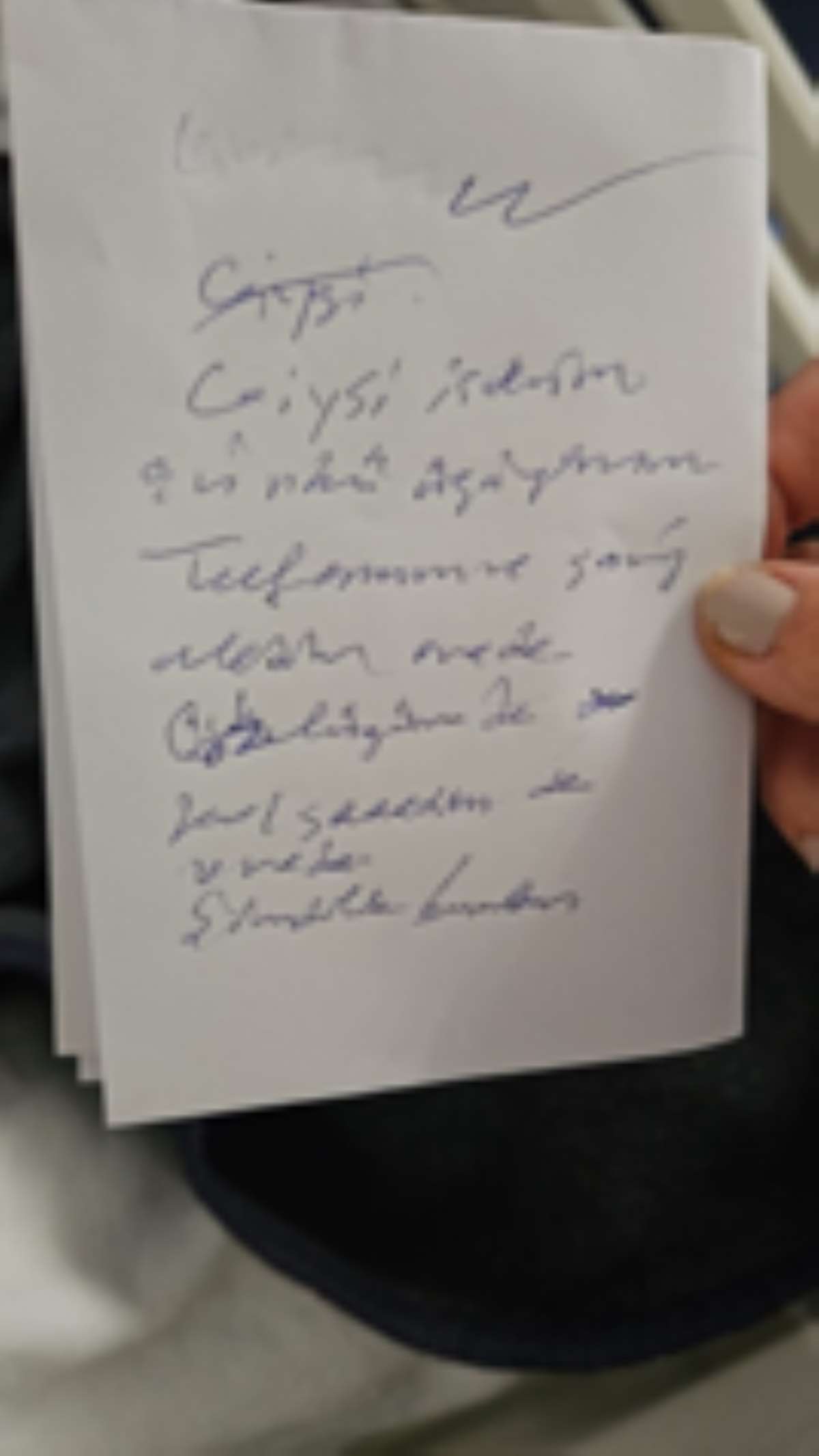 Ertesi sabah hastaneden telefon ettiler: Servise çıkarıyoruz. Koştuk, odaya almışlar. Damardan her türlü beslenme, ilaç, vitamin vb. ile kendine gelmişti biraz. Önce dudaklarından dediklerini anladık, veya yazdı: