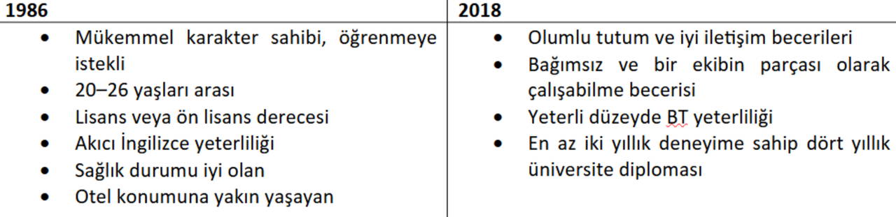 Tablo: Sosyo-davranışsal beceriler daha önemli hale geliyor Çin'in Şangay kentindeki bir Hilton Oteli yönetici adayının iş gereksinimleri