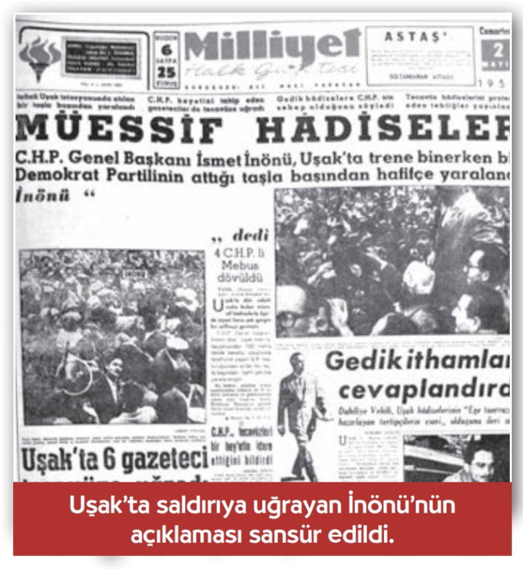 DP iktidarı basına sansür uyguladı. Gazetelerde, İnönü’nün bu açıklamalarının yer aldığı bölümler boş çıktı.